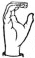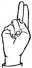 На ћирилици написано ТЕОДОРА МИСКИН састоји се из 13 слова [?]. Исписано ћириличном једноручном азбуком за глувонеме: